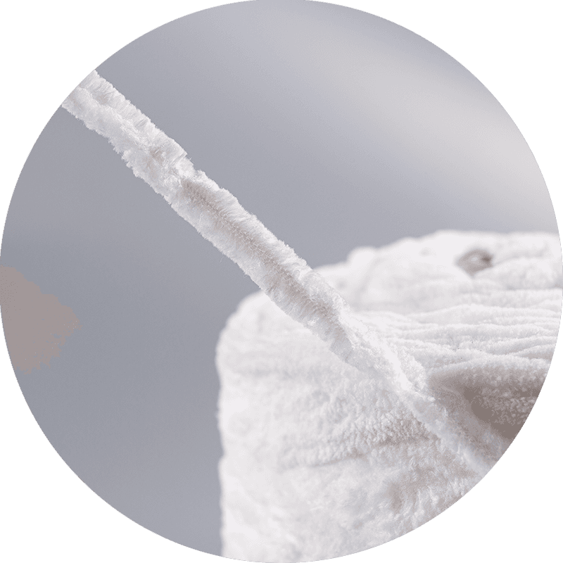 එහි තාප රඳවා ගැනීමේ හැකියාවේ හරය වන්නේ ද්විත්ව ඒක පාර්ශවීය වෙල්වට් නූල්වල භාවිතා කරන තන්තු වල ගුණයි. ප්ලෂ් වෙල්වට් පැත්ත සකස් කර ඇත්තේ තන්තු අතර වායු සාක්කුවක් නිර්මාණය කිරීමට, උණුසුම උගුලට හසු කර එය ගැලවී යාම වැළැක්වීමට ය. මෙම පරිවාරක බලපෑම නූල් ඝනත්වය මගින් තවදුරටත් වැඩි දියුණු වන අතර, තාප අලාභය අඩු කර, පැළඳ සිටින පුද්ගලයා සුවපහසු ලෙස තබා ගනී. ඊට හාත්පසින්ම වෙනස්ව, සිනිඳු රෙදිපිළි පැත්ත උණුසුම්ව සම්මුතියකින් තොරව මෘදු ස්පර්ශයක් ලබා දීමෙන් වෙල්වට් සම්පූර්ණ කරයි, මෙම නූල් වලින් සාදන ලද අයිතම සමට එරෙහිව සුවපහසුවක් ලබා දෙන බව සහතික කරයි.
